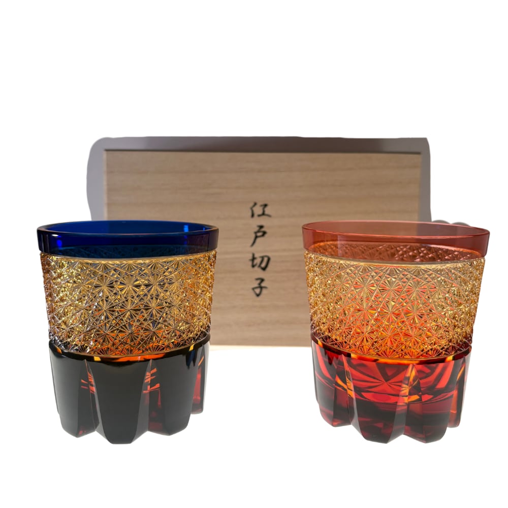門脇硝子加工所アウトレット福袋2026 クリスタルロックグラス ペア 琥珀色金赤 琥珀色瑠璃
