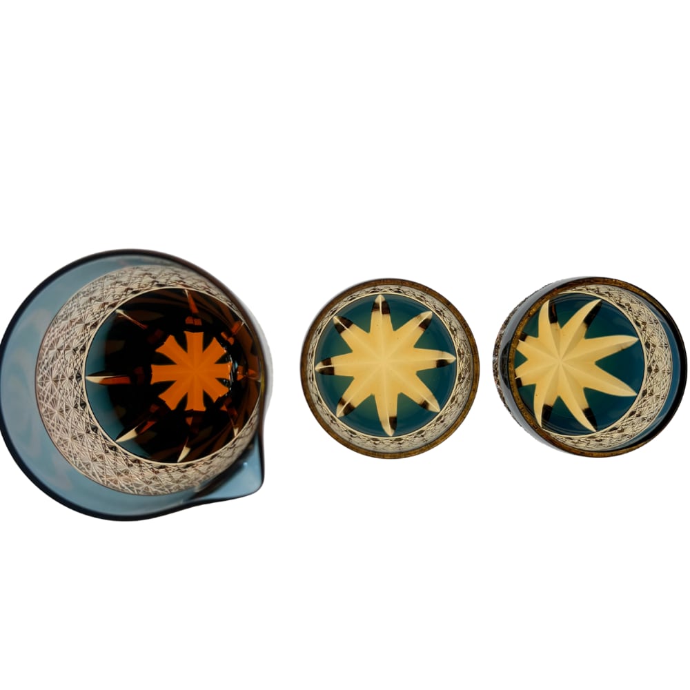 門脇硝子加工所アウトレット福袋2026 クリスタル片口セット(炎) 琥珀色藍