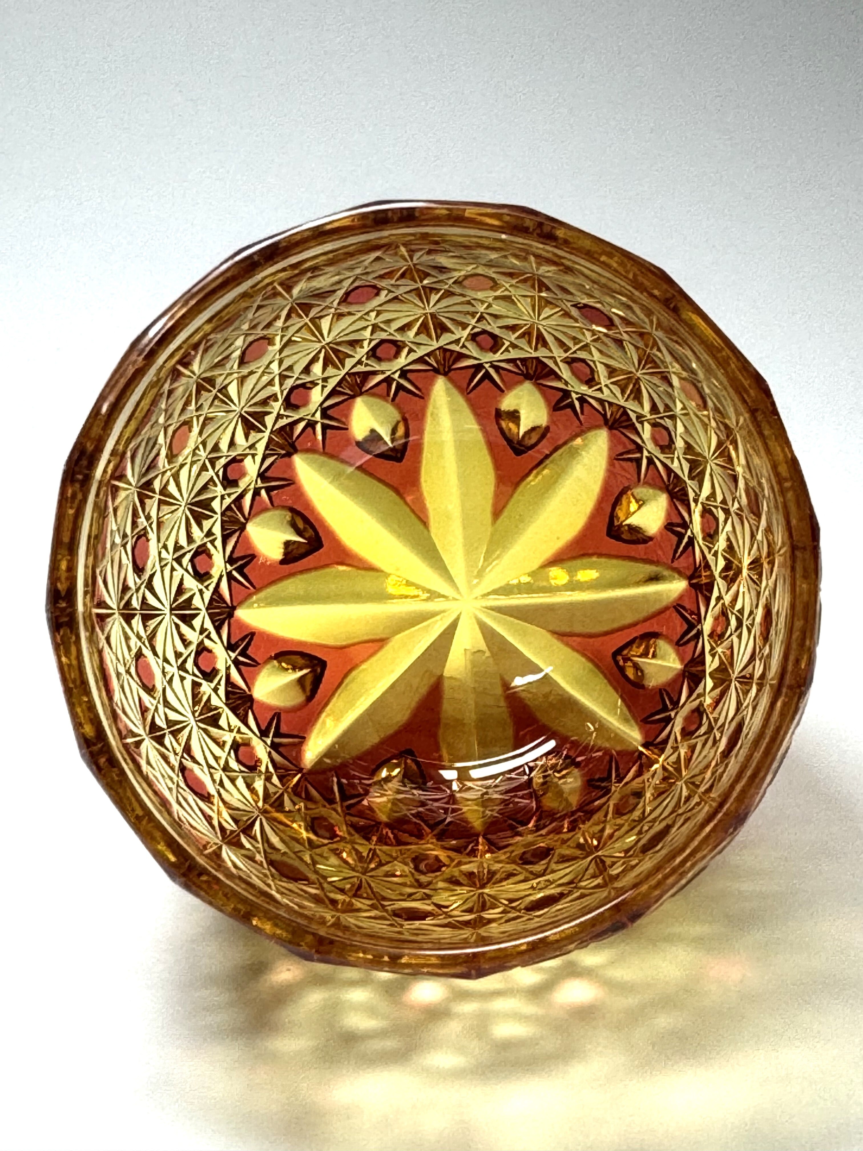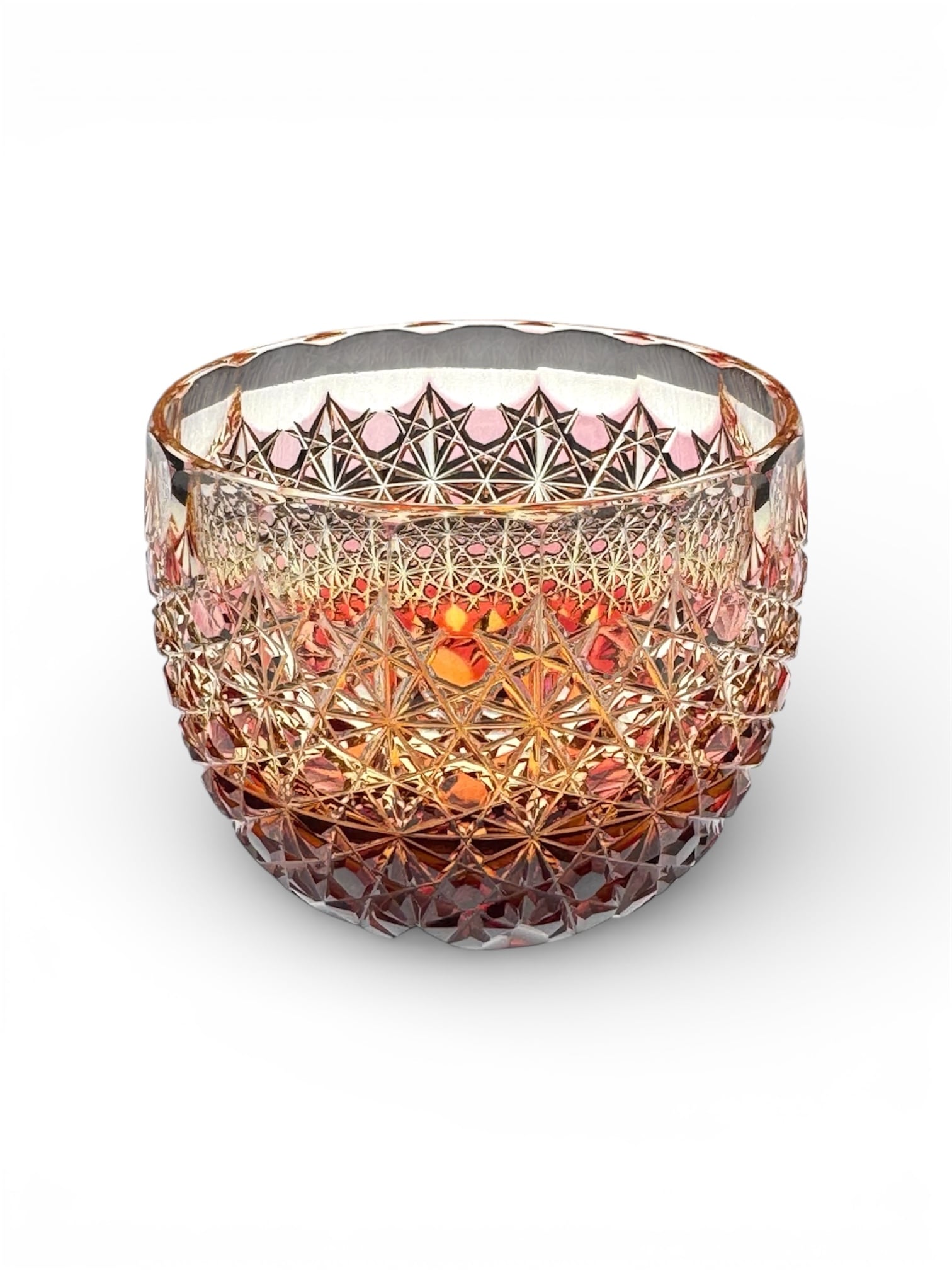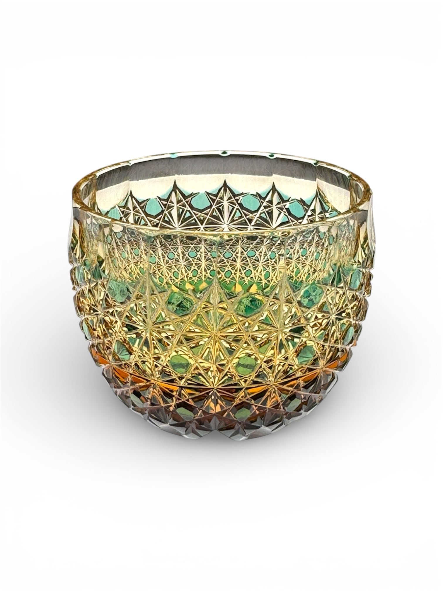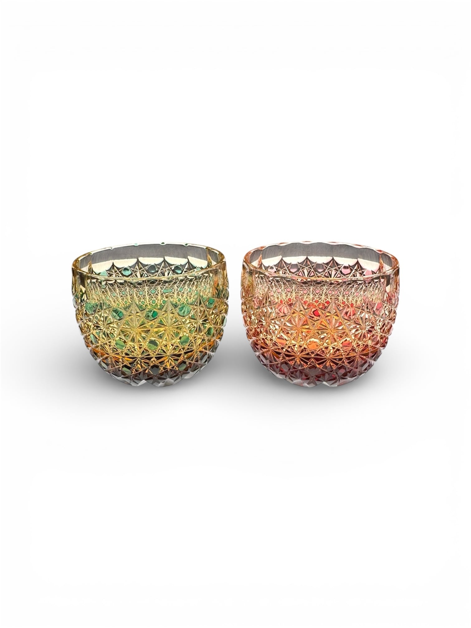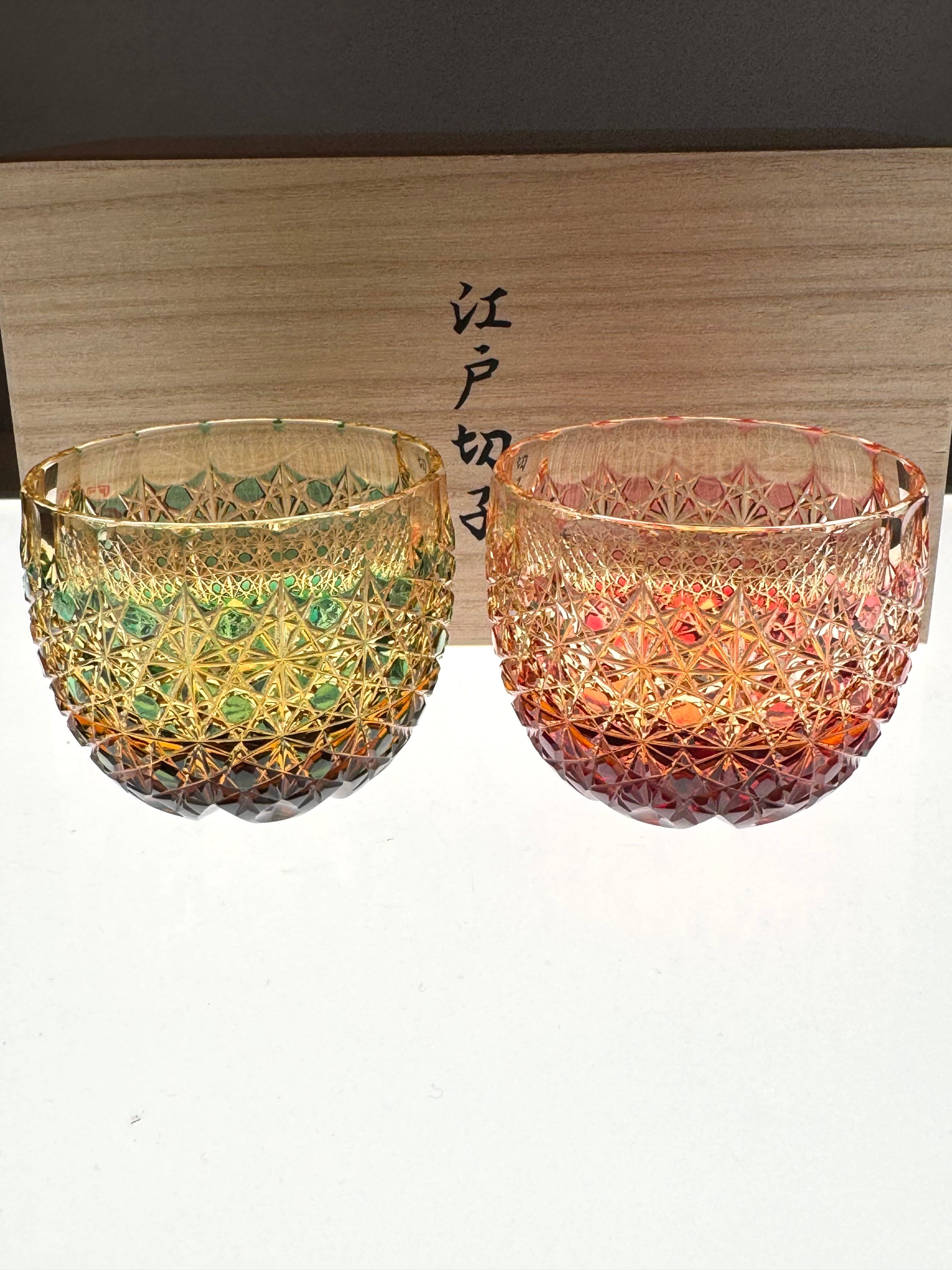 門脇硝子加工所アウトレット福袋2026 クリスタルぐい吞セット(蕾) 琥珀色緑 琥珀色金赤