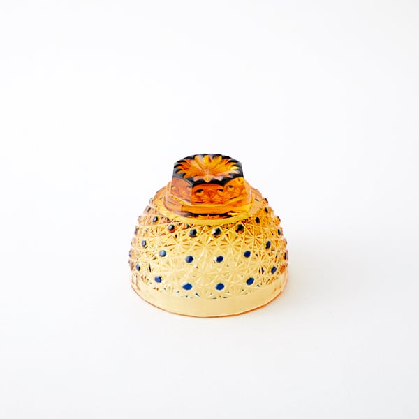 江戸切子 アンバークリスタルぐい呑 高台 (琥珀色瑠璃)