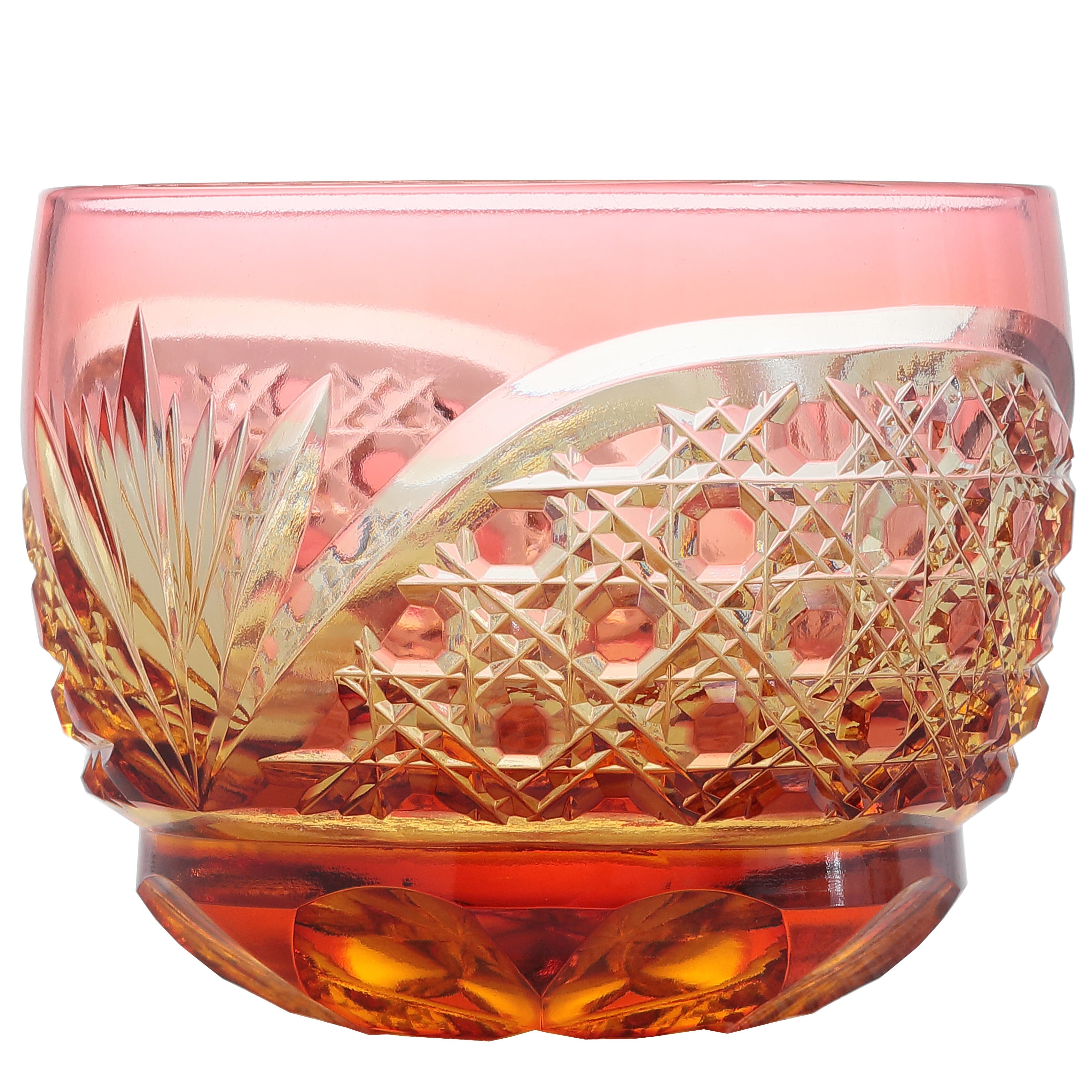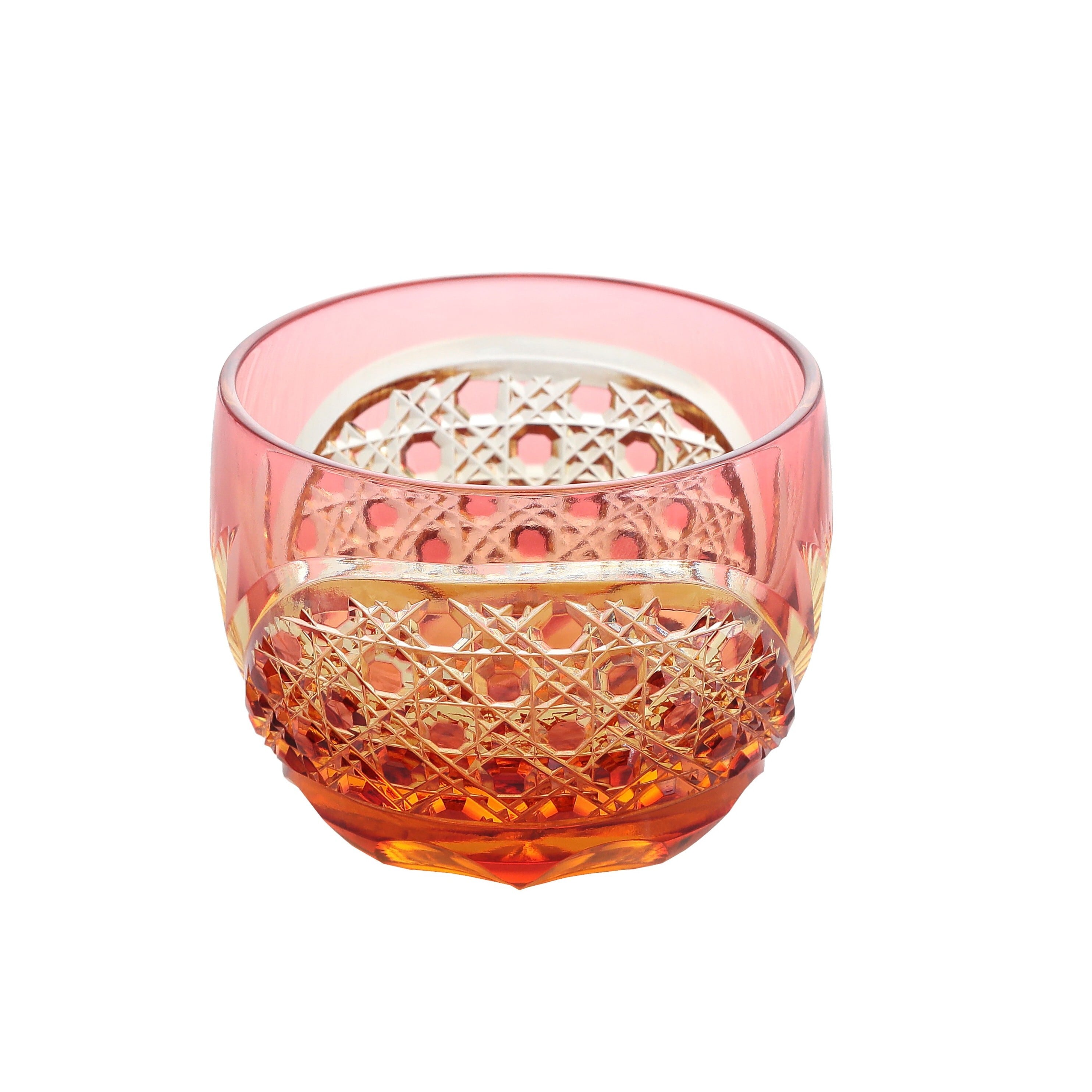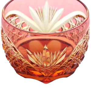 江戸切子 クリスタルぐい呑(琥珀色金赤)琥珀色ピンク