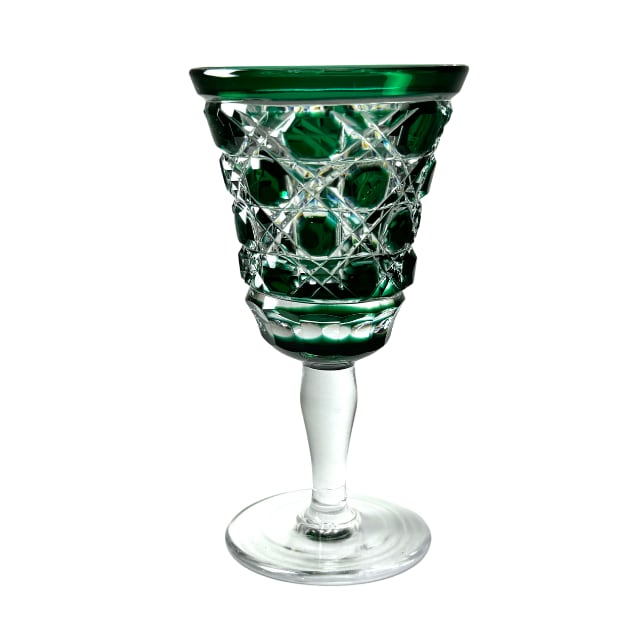 ガラスの側面に伝統柄の籠目模様を施したデザインの食前酒グラス