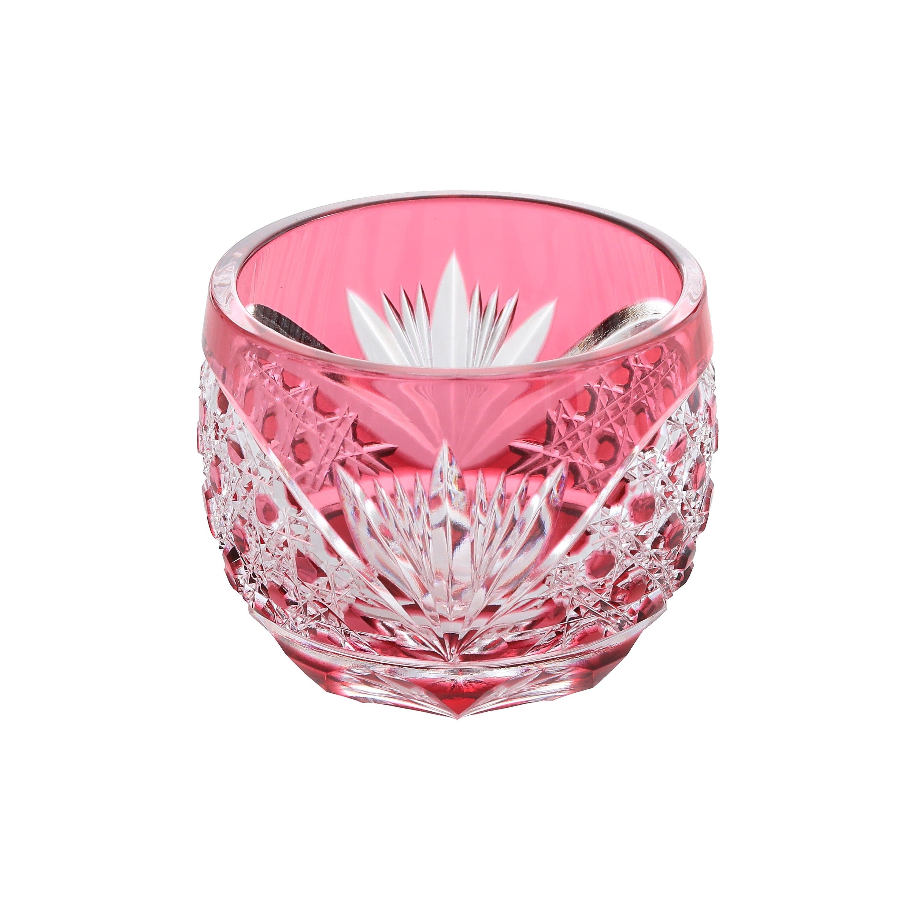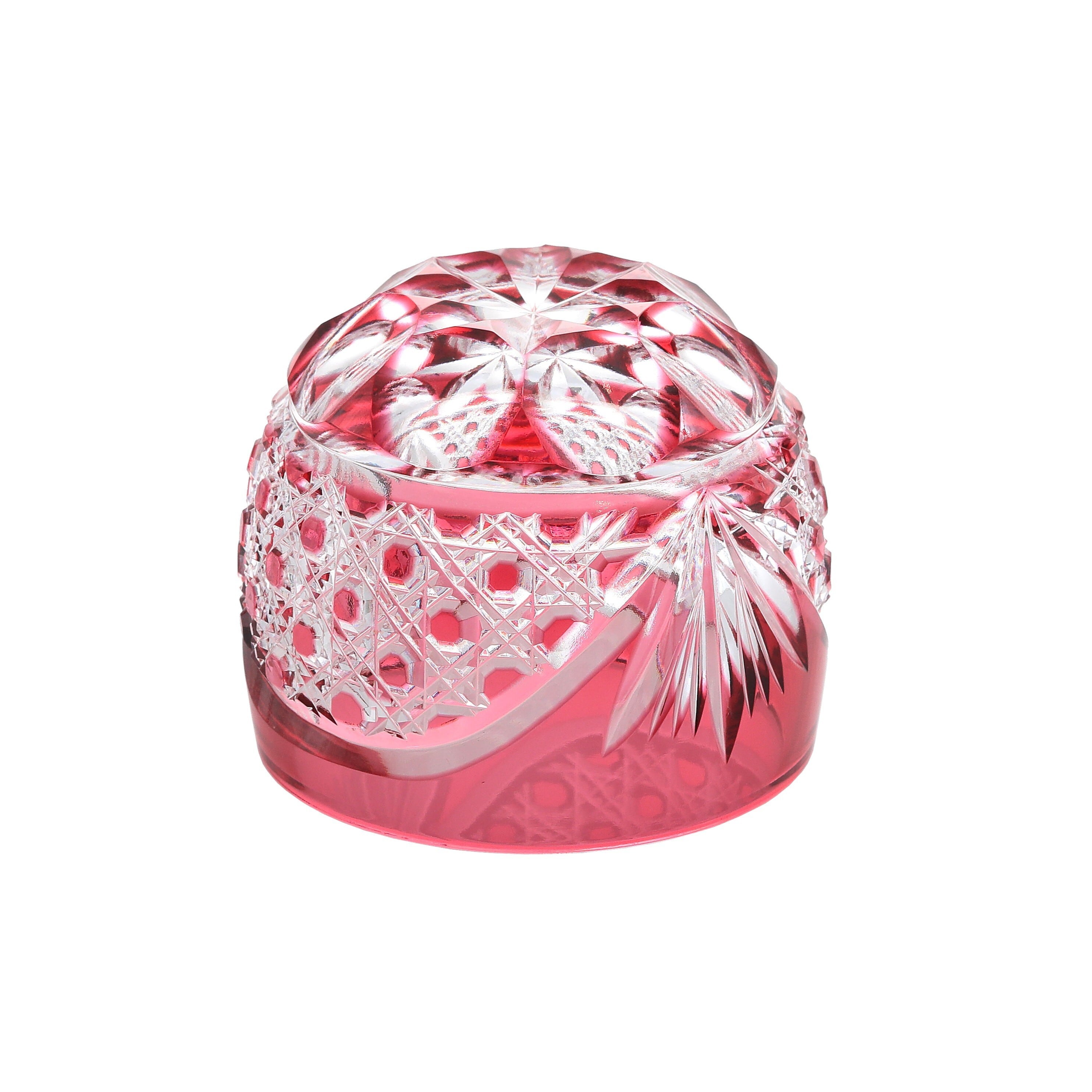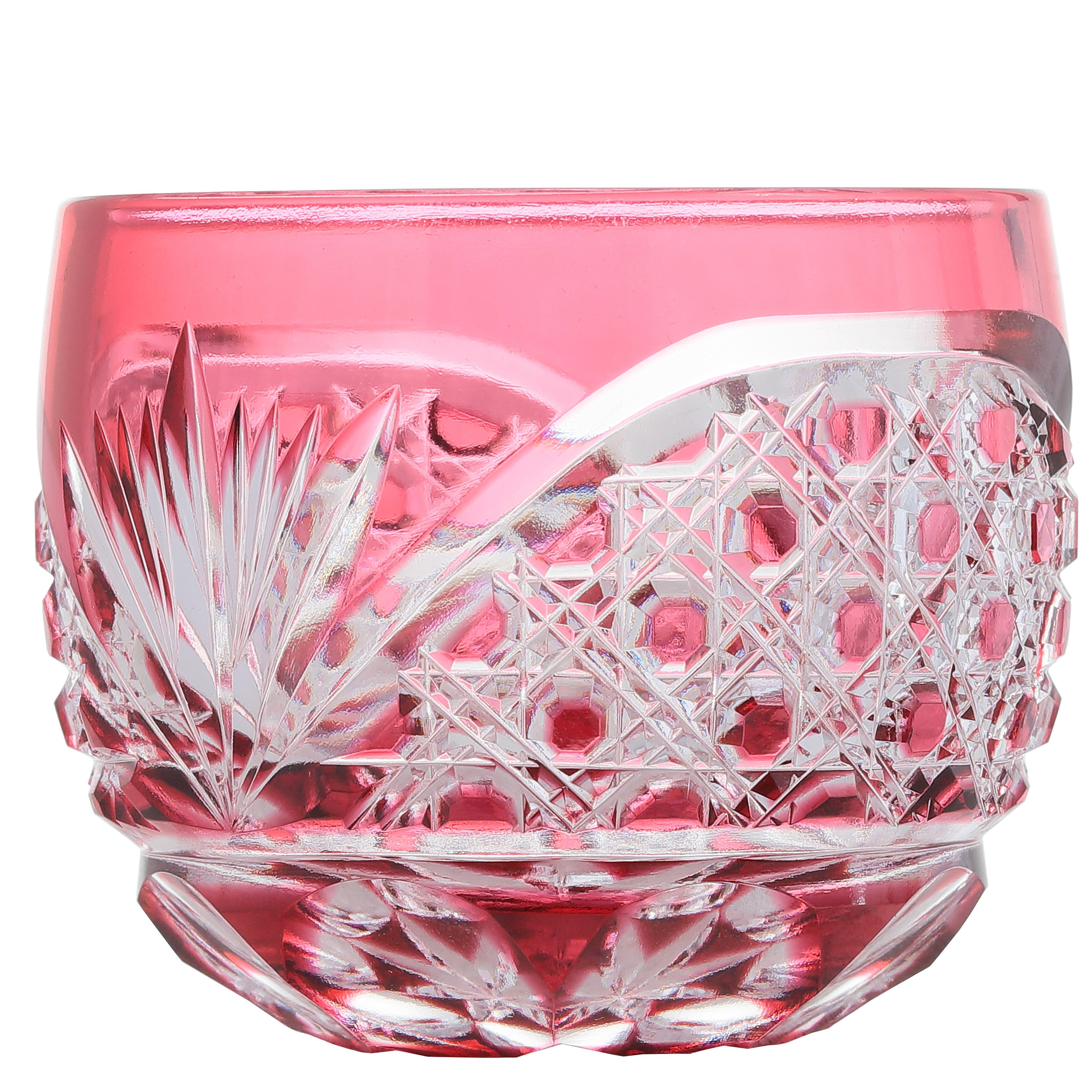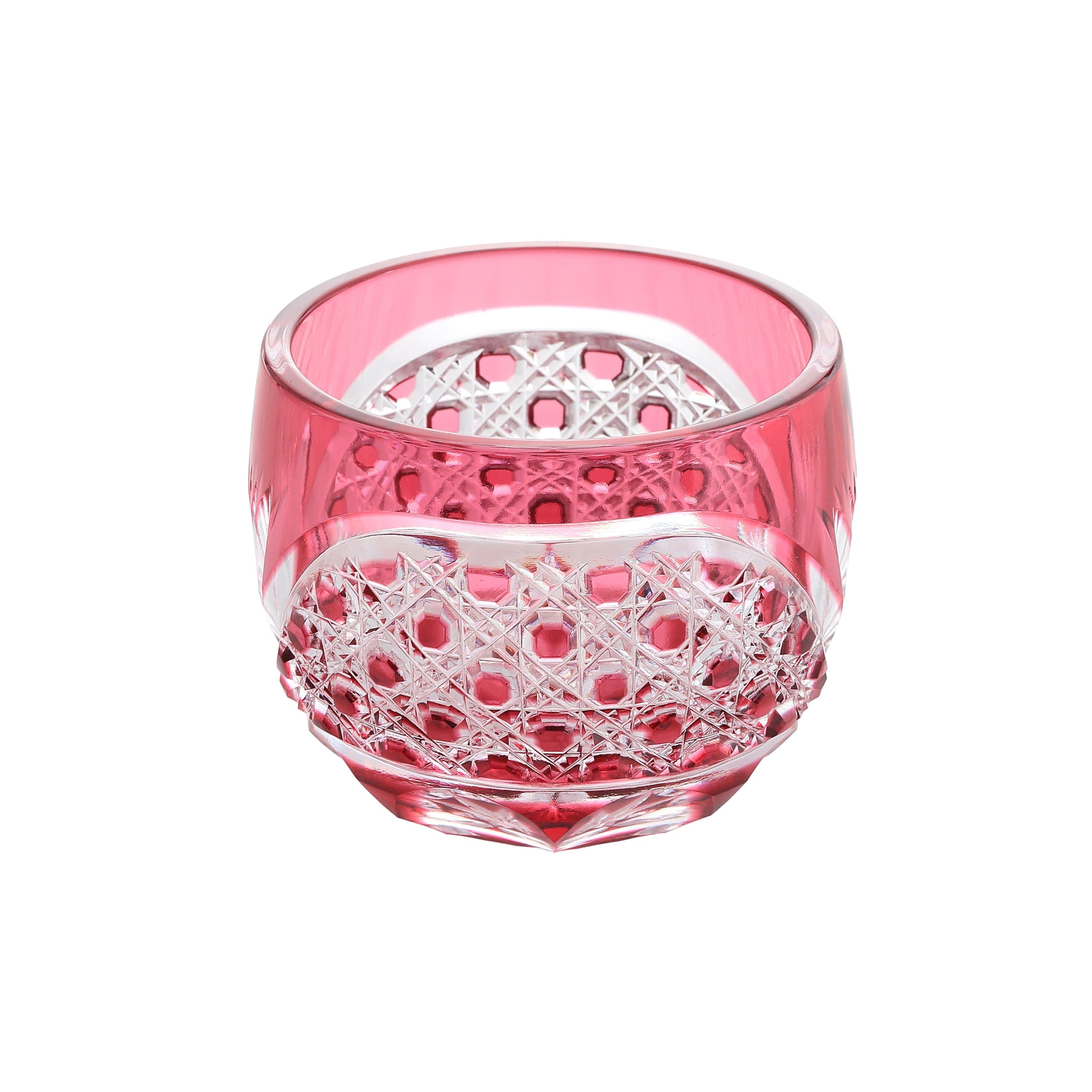 江戸切子 クリスタルガラスぐい呑(金赤)ピンク