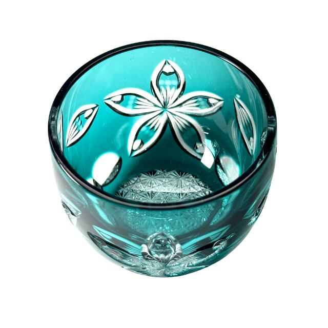 江戸切子 クリスタルぐい呑 桜(エメラルドグリーン)
